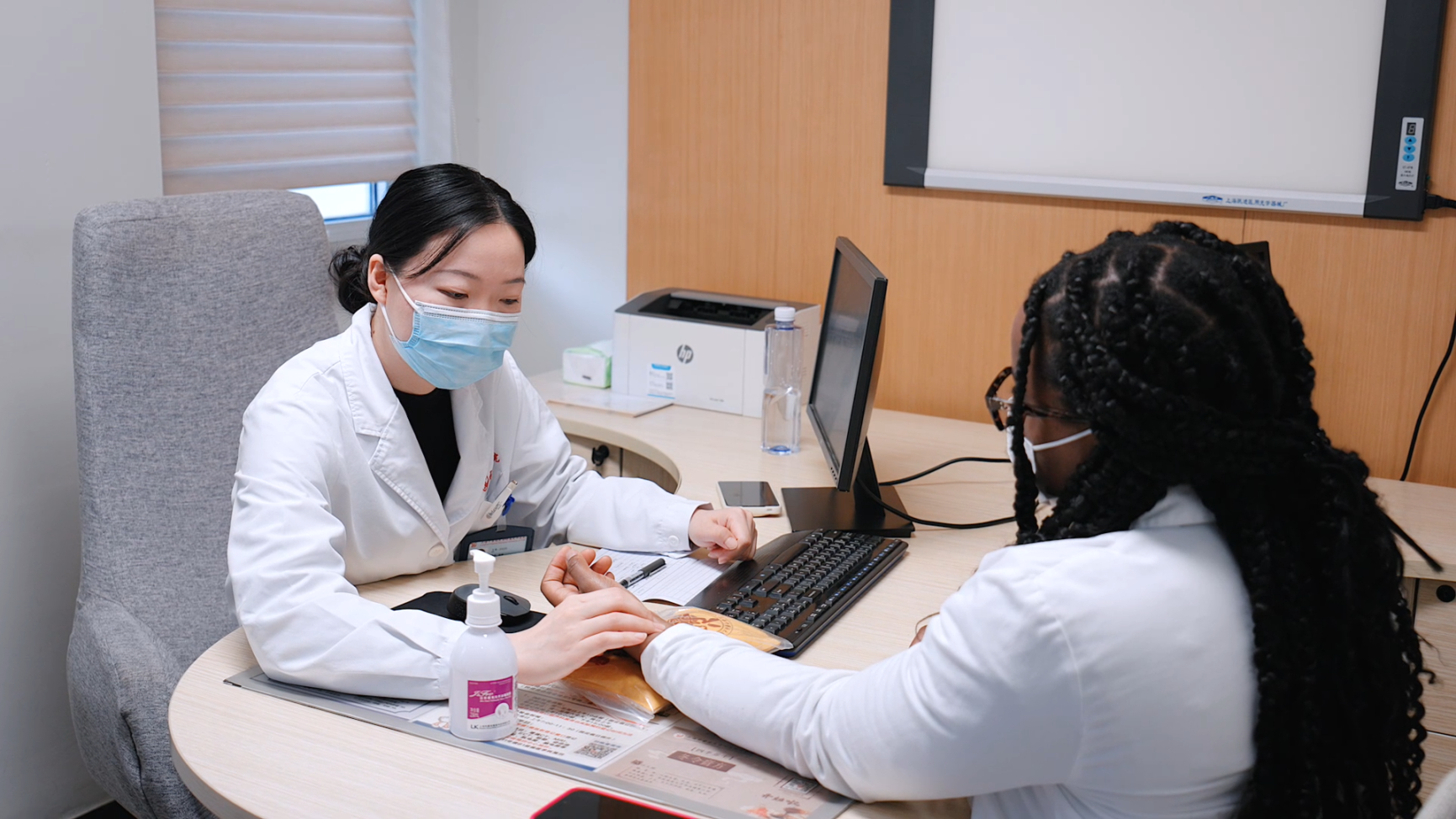 A student has her pulse taken the TCM way